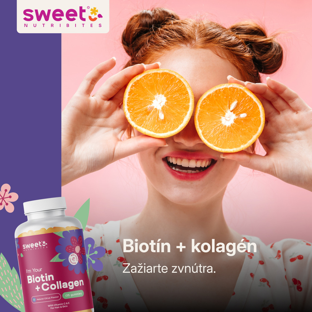 Hlavnou hviezdou v zložení gumových cukríkov je biotín, ktorý mnohí označujú ako „vitamín krásy“, pretože pomáha udržiavať zdravé vlasy a pokožku. Jeho pôsobenie dokonale podporuje kolagén, štrukturálny proteín, ktorý je dôležitou stavebnou zložkou pokožky, spojivového tkaniva, vlasov a nechtov, ale zlou správou je, že naše telo ho po 25. roku života produkuje čoraz menej.