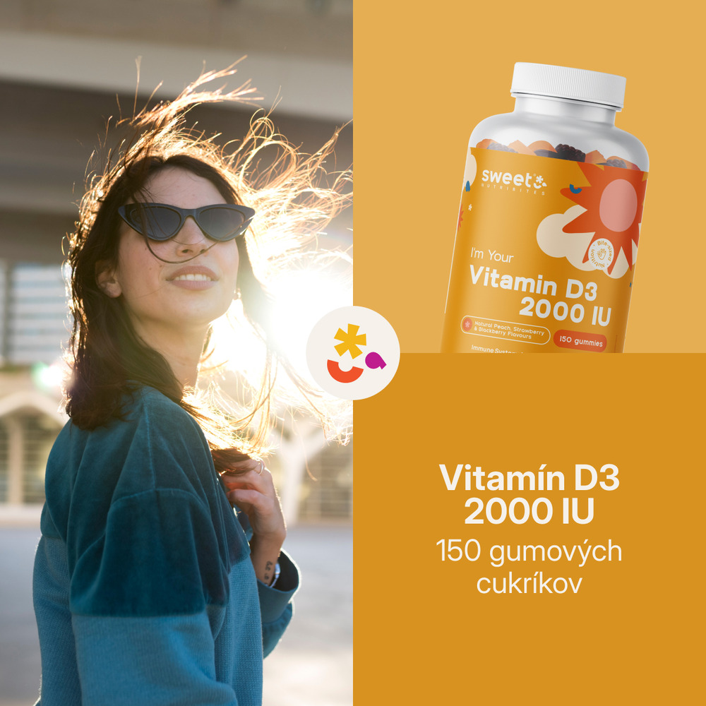 Vitamín D3 2000 IU obsahuje 5,8 g cukru na dennú dávku (2 gumíky).